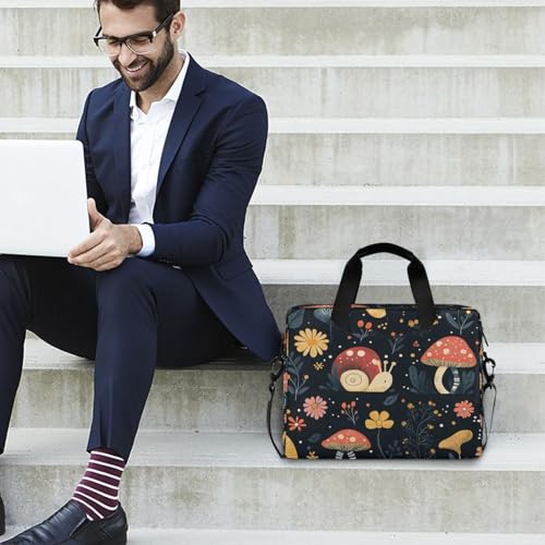 Cute Snails Mushrooms Flower 15.6 Inch Laptop Bag Briefcase for Business, Water-Resistant Computer Bag Fits 14-16 Inch Notebook for Men Women, Office Travel Work Backpack 3