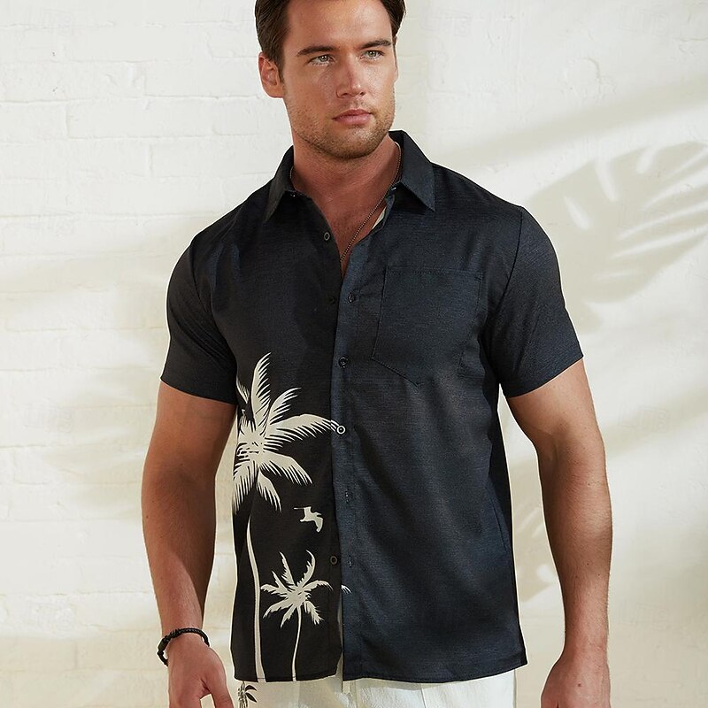 Highlights [Fabric] : Crafted from high-quality polyester, this men's tropical shirt is both lightweight and breathable, ensuring maximum comfort even on the warmest days. It's perfect for keeping you cool and relaxed during spring and summer seasons. [Fit] : Featuring a regular fit, this shirt is designed to suit a variety of body types while maintaining a fashionable silhouette. The short-sleeve design allows for ease of movement, making it an ideal choice for casual outings and semi-formal settings alike. [Design Highlights] : The shirt showcases a striking black base with a bold white coconut tree and tropical plant print, delivering a standout look that exudes vacation vibes. The stand collar adds a touch of sophistication, elevating the shirt's appeal for multiple occasions. [Occasions] : Perfect for vacations, streetwear, and daily casual wear, this shirt is versatile enough for both outdoor activities and leisurely gatherings. Whether you're going out or staying in, it adds a stylish flair to your wardrobe. [Size Range] : Available in sizes S, M, L, XL, 2XL, and 3XL, catering to a wide range of body sizes and preferences to ensure a comfortable and personalized fit.