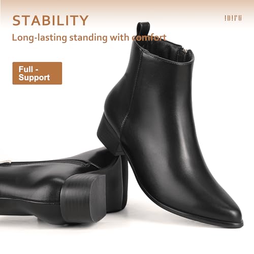 IDIFU Women's Romy Classic Pointed Toe Ankle Boots Side Zipper Low Block Heel Dress Booties 1