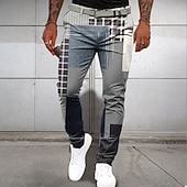 More information about Men's Geometric Color Block Patchwork Dress Pants Mid Waist Vintage Casual Formal Dailywear Pocket Summer Spring Fall Black And White