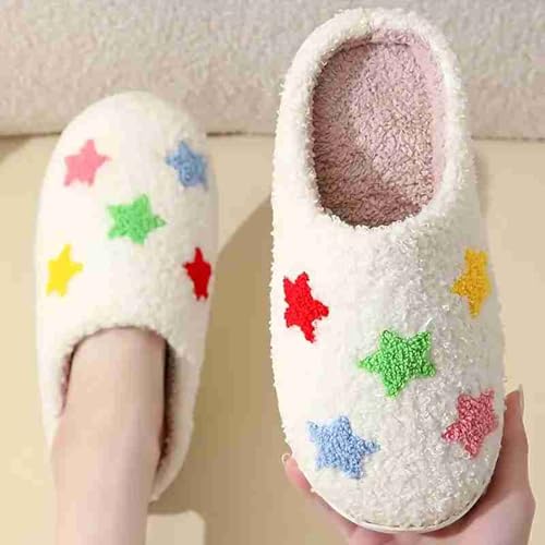 HOT ! Colorful Heart Pattern Winter Slippers Soft Sole Warm Indoor Slippers, Non-slip Mute Cozy Shoes