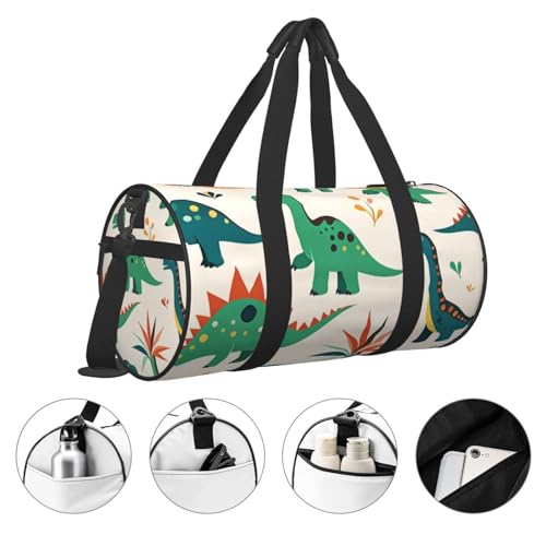 Dinosaurs Footprint Printed Travel Bag,Round Personal Item Storage bag,Foldie Duffel Bag for Traveling Vacation,Fitness,Sports 5
