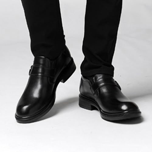 AngryMonkey Men's Black Genuine Leather Dress Boots,Classic Comfort Plain-Toe Buckle Strap Slip on Business Casual Oxford Shoes 3