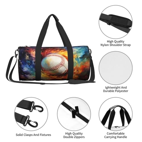 Baseball Fire and Water Painting Travel Duffel Bag Shoes Compartment Foldable Lightweight Yoga Gym Sports Bag 7