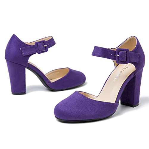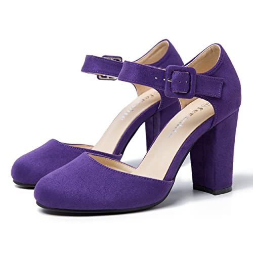 • Comfort Women Block Heel Pumps Closed Round Toe featuring an ankle strap to keep your feet secure for every walk, with a cushioned insole and a sturdy block heel to support every move you make.