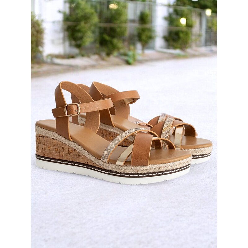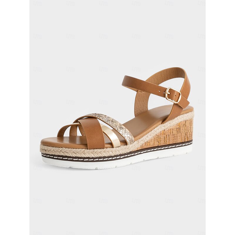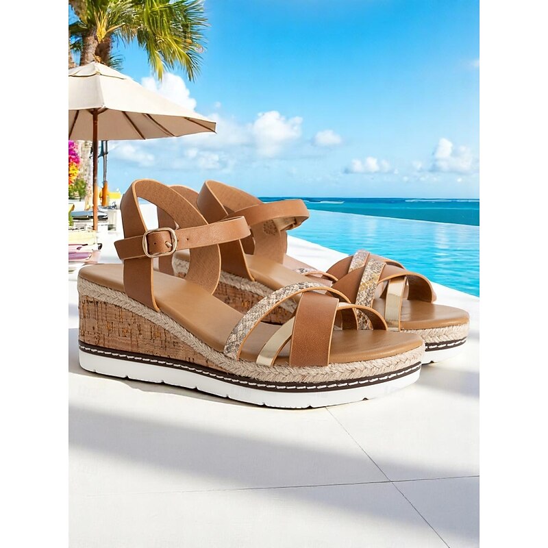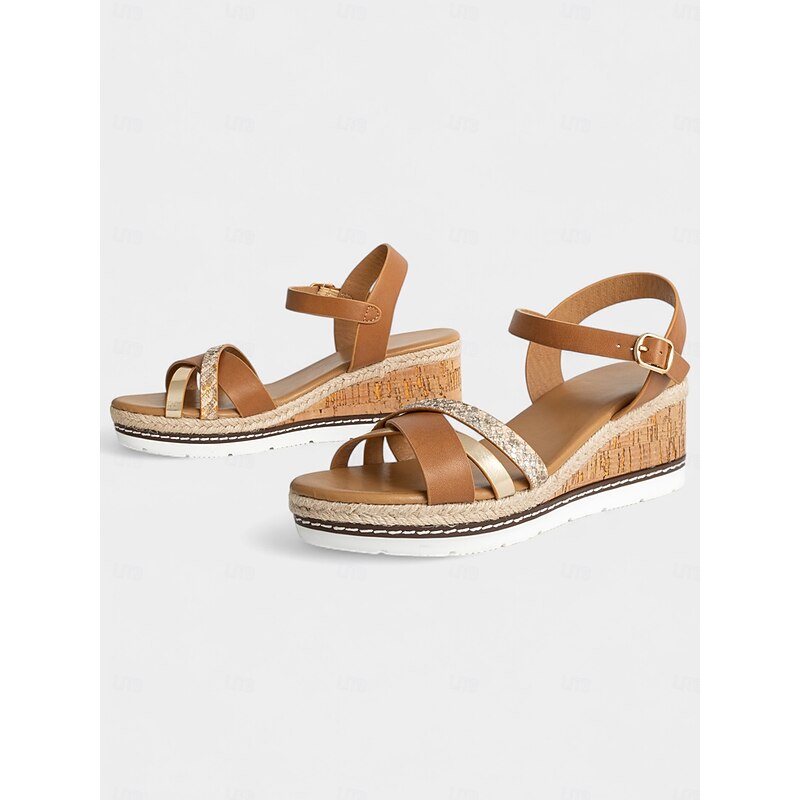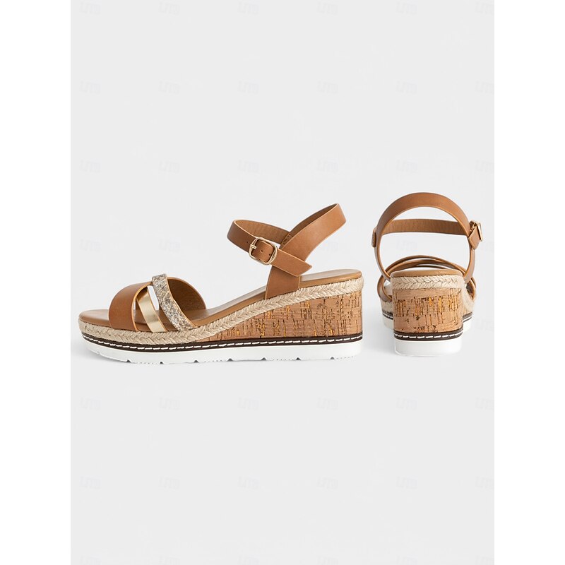HOT ! Women's Cork Wedge Sandals – Brown Strappy Espadrille Platform with Buckle, Casual Summer Shoes for Daily Wear, Travel and Beach Outfits