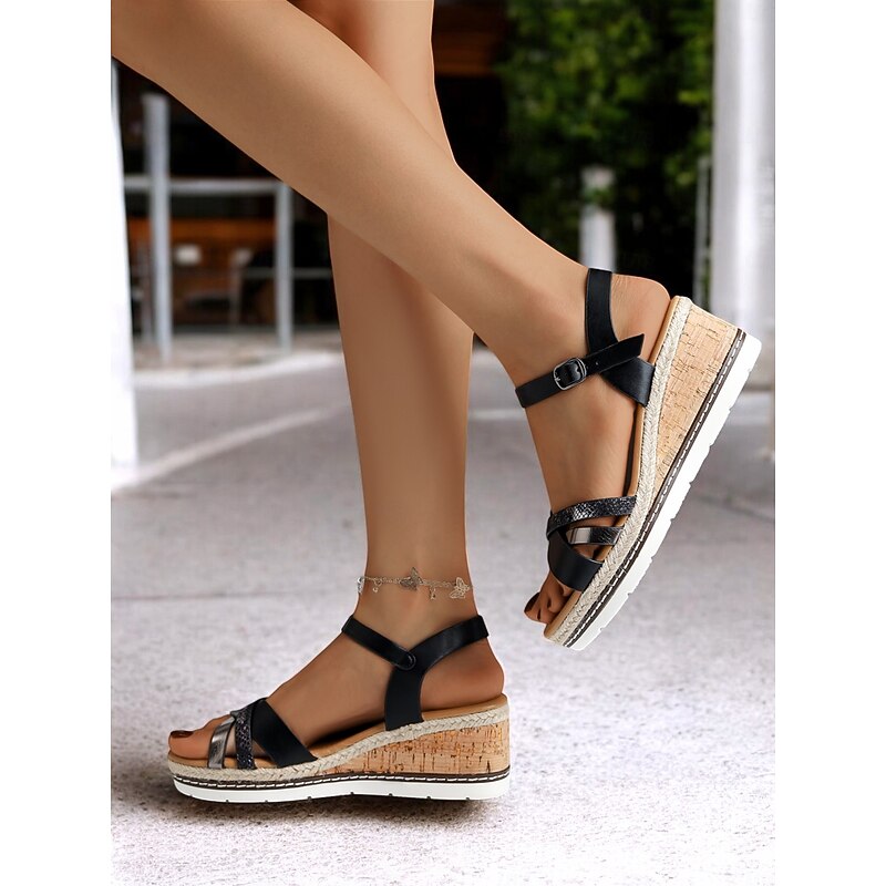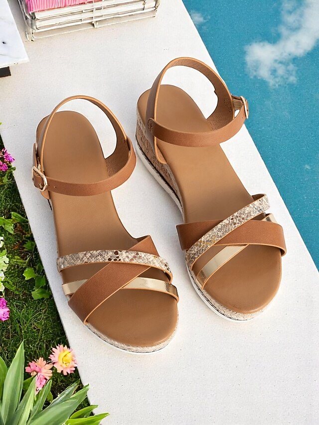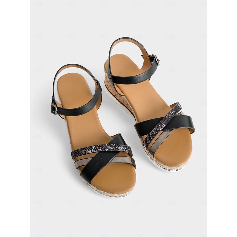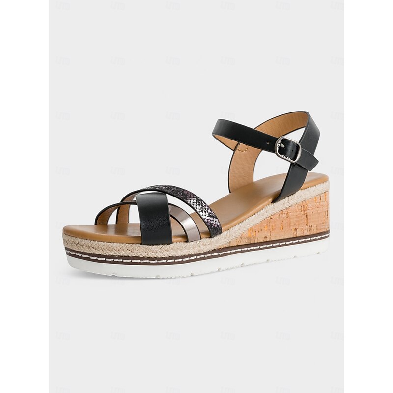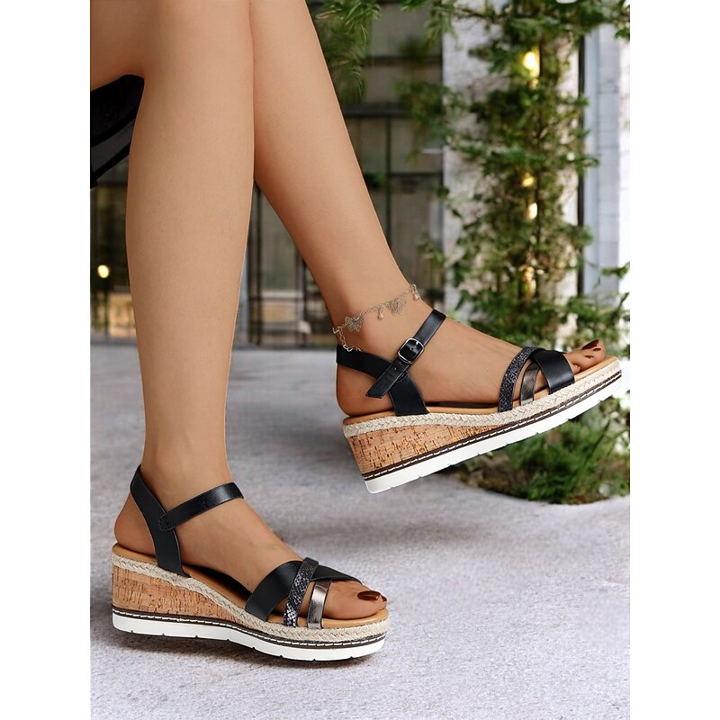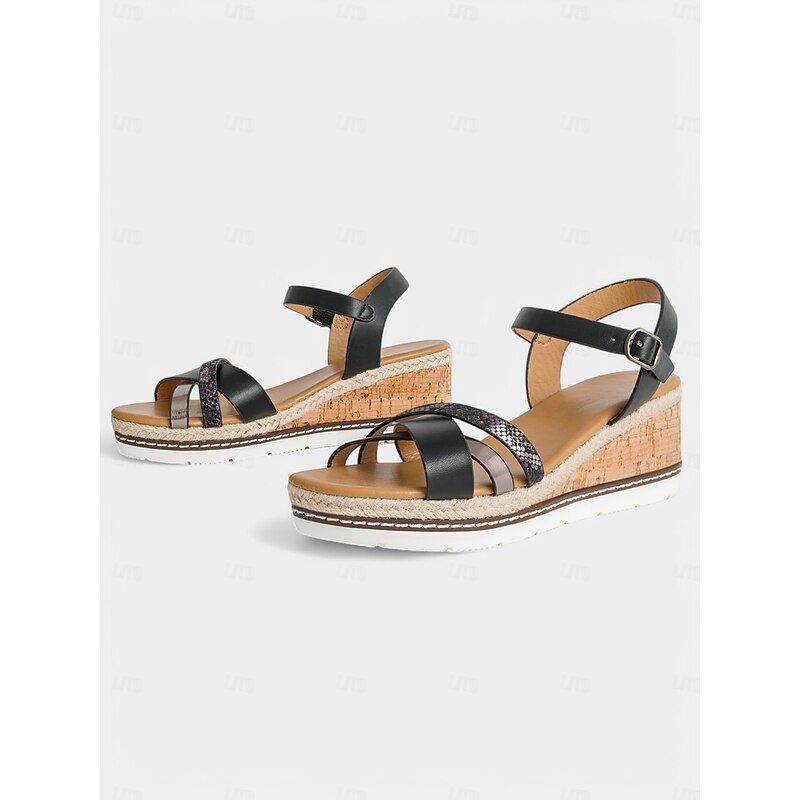 HOT ! Women's Cork Wedge Sandals – Brown Strappy Espadrille Platform with Buckle, Casual Summer Shoes for Daily Wear, Travel and Beach Outfits