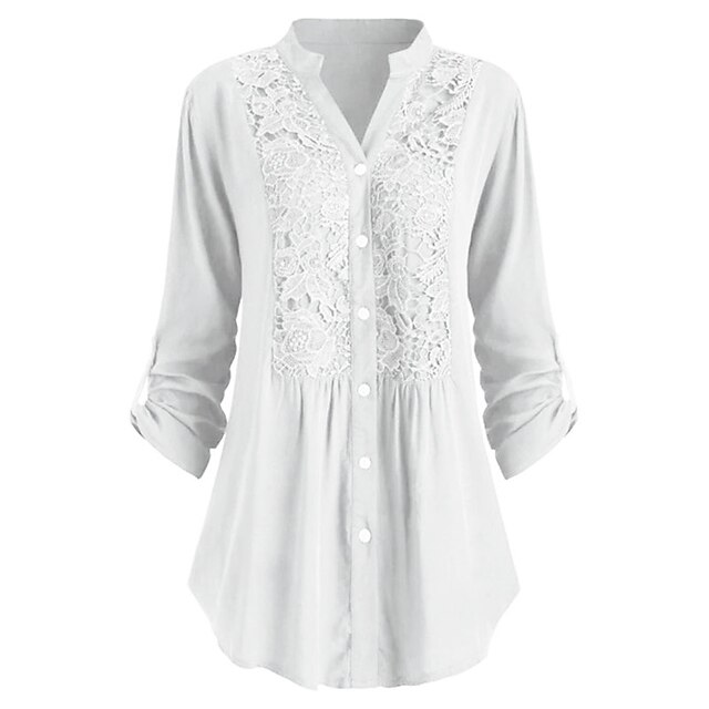 More information about Women's Shirt Lace Shirt Tunic Shirts Blouse Elegant Vacation Ladies Solid Color Floral Lace Crochet Long Sleeve Regular Tops Shirt Collar Party Casual Daily Black White Wine Mint Green