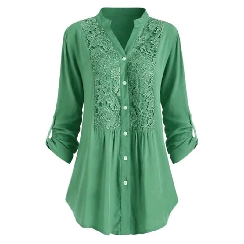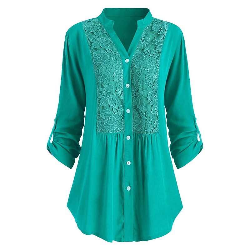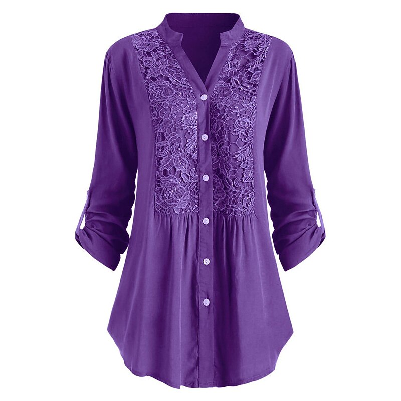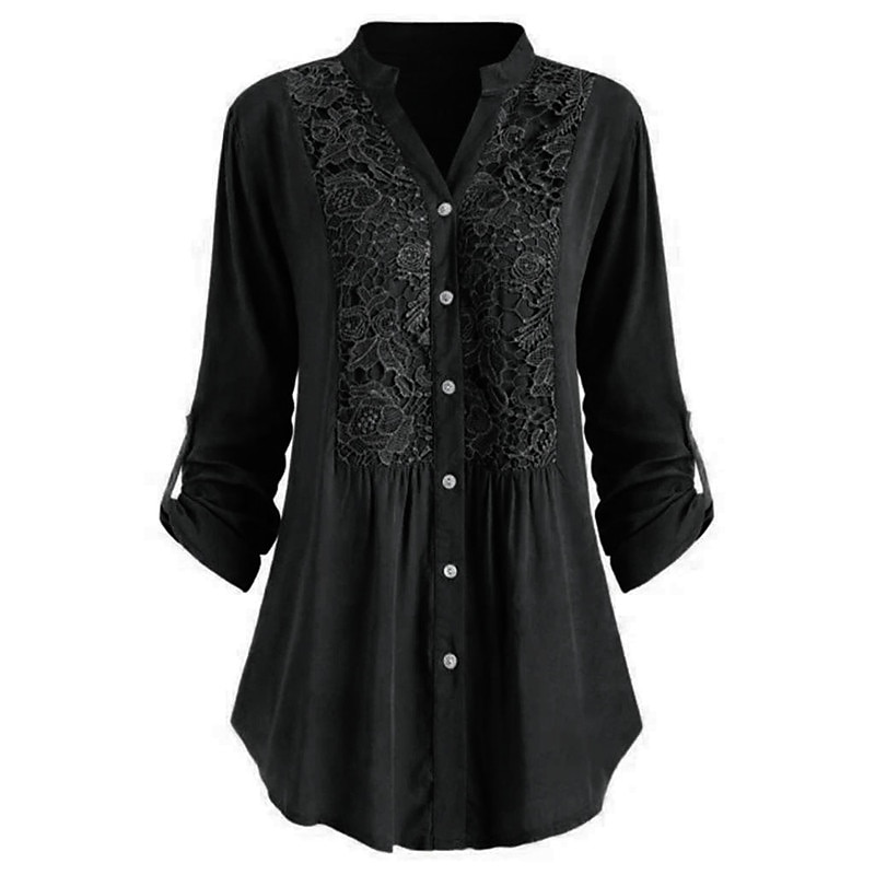 Highlights [Fabric & Fit]: Crafted from high-quality polyester, this women's blouse provides a lightweight and breathable feel, ensuring all-day comfort. It features a micro-elastic composition for slight stretch and a regular fit, which creates a flattering silhouette that flows elegantly with every movement. [Design Highlights]: This blouse is adorned with intricate floral lace and crochet trims, offering a sophisticated and feminine touch. Its classic shirt collar and button-down front add to the timeless elegance, while the long sleeves can be rolled up for a more casual, versatile look. [Occasions & Style]: Perfect for spring, fall, and winter, this elegant blouse is ideal for a variety of occasions, including holidays, parties, daily casual outings, and weekend gatherings. Its design suits both classic and vacation styles, making it a versatile addition to your wardrobe. [Sizing & Suggestions]: Available in a wide range of sizes from L to 5XL, this blouse offers a relaxed fit that's perfect for everyone. For optimal comfort, it is suggested to select one size larger than usual. [Care Instructions]: Easy to maintain, this blouse can be machine washed or hand washed, ensuring convenience and longevity with every wear.