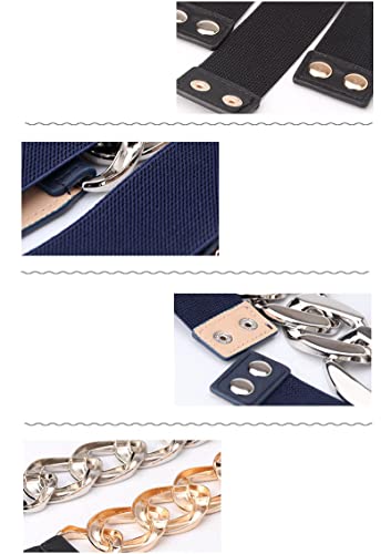Women's Slim Elastic Waist Belt Punk Thick-Chains Gold Buckle Girdle Corset for Dress 5