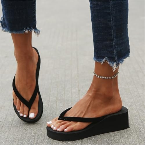 • 【Stylish and Comfortable】Durable, skin-friendly and comfortable, the women's flip-flop sandals are lined with skin-friendly material to prevent friction or discomfort. The upper design of this women's flip-flop is unique and fashionable, and can be matched with a variety of clothing. The wedge flip-flops can also visually lengthen the leg proportions.