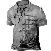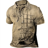More information about Men's Graphic Prints Vintage Sailboat Polo Shirt Golf Shirt Short Sleeve Shirt Turndown Outdoor Street Blue Green Khaki Gray Drawstring Print Clothing Apparel Sports Fashion Streetwear Designer