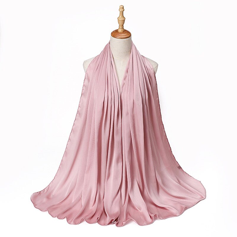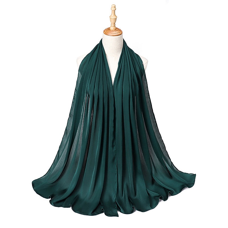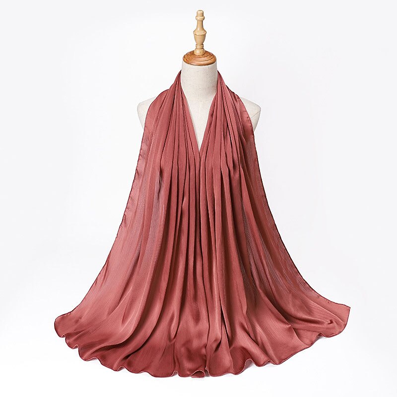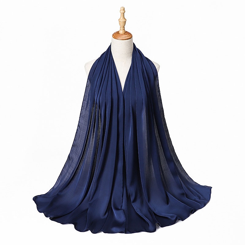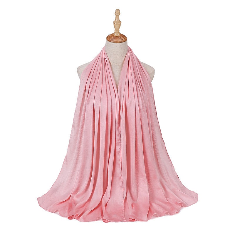 Highlights [Fabric] : Crafted from high-quality polyester, this hijab offers a smooth and flowing texture that mimics a silky finish without forgoing durability. The lightweight material ensures comfort throughout the day, while the solid design lends a subtle sheen that enhances its elegance and versatility. [Fit] : The hijab features a versatile style suitable for various head shapes and sizes, ensuring a comfortable and secure fit. Its design allows it to be used as a scarf or turban, enhancing its functionality and adaptability in different fashion contexts. [Design Highlights] : This scarf is designed with a crinkled texture that adds depth and interest. It comes in a rich palette of colors, ranging from soft pastels to bold tones, allowing for endless styling possibilities. The classic solid color design makes it a timeless addition to any wardrobe. [Occasions] : Perfect for daily wear, dates, and parties. Whether for casual outings or formal gatherings, this hijab effortlessly completes any look with a touch of sophistication and grace. Ideal for those seeking to add charm and style to their ensemble while observing cultural traditions. [Size Notice] : Available in one size that fits all, providing versatility in styling and ease of wear for various occasions.