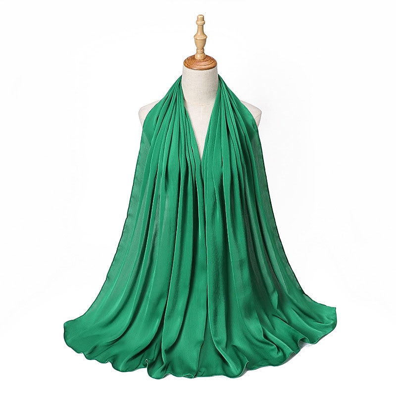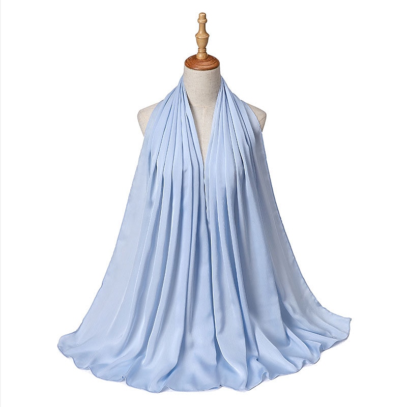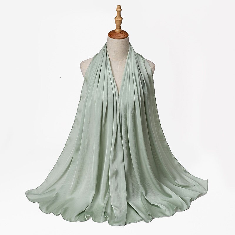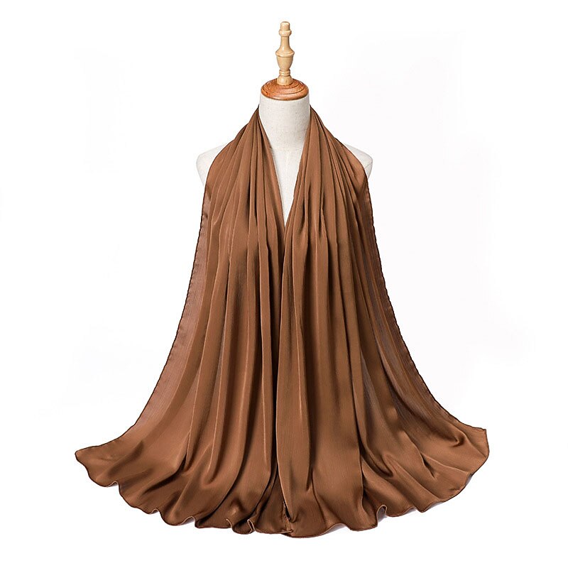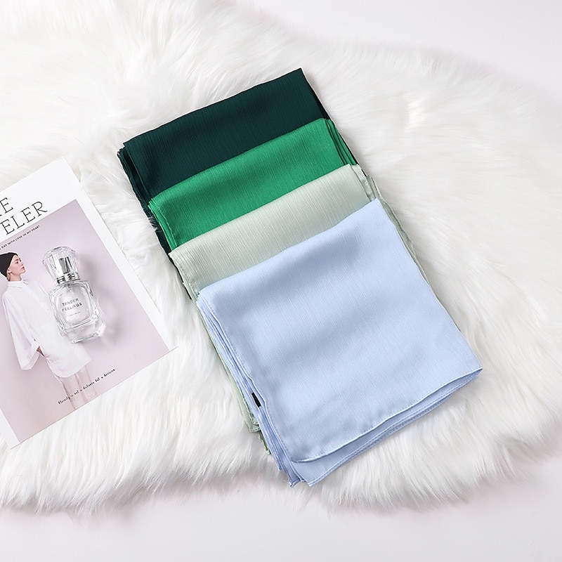 Highlights [Fabric] : Crafted from high-quality polyester, this hijab offers a smooth and flowing texture that mimics a silky finish without forgoing durability. The lightweight material ensures comfort throughout the day, while the solid design lends a subtle sheen that enhances its elegance and versatility. [Fit] : The hijab features a versatile style suitable for various head shapes and sizes, ensuring a comfortable and secure fit. Its design allows it to be used as a scarf or turban, enhancing its functionality and adaptability in different fashion contexts. [Design Highlights] : This scarf is designed with a crinkled texture that adds depth and interest. It comes in a rich palette of colors, ranging from soft pastels to bold tones, allowing for endless styling possibilities. The classic solid color design makes it a timeless addition to any wardrobe. [Occasions] : Perfect for daily wear, dates, and parties. Whether for casual outings or formal gatherings, this hijab effortlessly completes any look with a touch of sophistication and grace. Ideal for those seeking to add charm and style to their ensemble while observing cultural traditions. [Size Notice] : Available in one size that fits all, providing versatility in styling and ease of wear for various occasions.