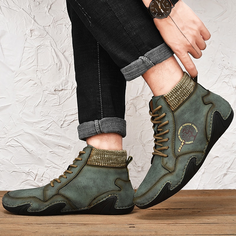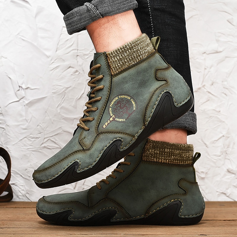 Men's Vintage High-Top Ankle Boots – Lace-Up Casual Outdoor Shoes with Non-Slip Sole for Hiking & Daily Wear