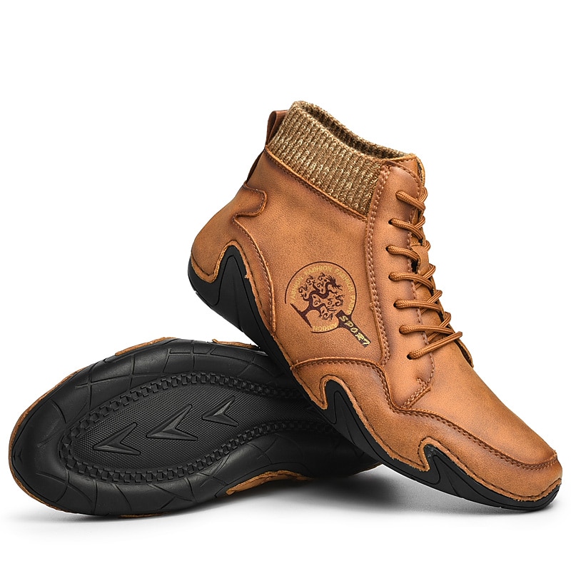 More information about Men's Vintage High-Top Ankle Boots – Lace-Up Casual Outdoor Shoes with Non-Slip Sole for Hiking & Daily Wear