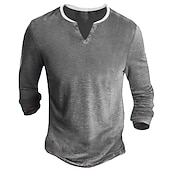 More information about Men's Button T Shirt T Shirt Henley Shirt Long Sleeve Shirt Long Sleeve V Neck Spring & Fall Plain Designer Basic Casual Street Sports Holiday Yellow Gray Top Tee for Men
