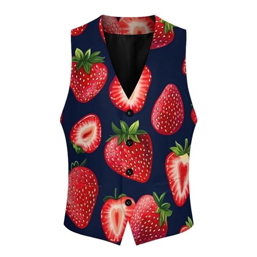 Strawberry Men's Suit Vest Slim Fit Business Dress Party Pattern Waistcoat Vest Top 1