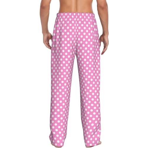 HOT ! Mens Pajama Pants - Vintage Polka Dots Pink Print Soft Sleep Lounge Pants For Men, Casual Pj Bottoms With Pockets