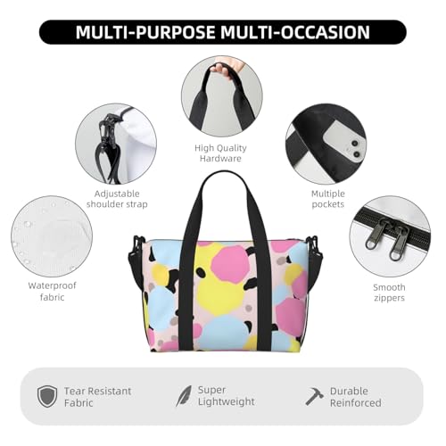 Pink Geometric Travel Bag, Blue Yellow Geometric Weekender Overnight Bag, Shoulder Travel Duffel Bag Carry On Gym Bag for Women Men 4