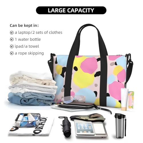Pink Geometric Travel Bag, Blue Yellow Geometric Weekender Overnight Bag, Shoulder Travel Duffel Bag Carry On Gym Bag for Women Men 7