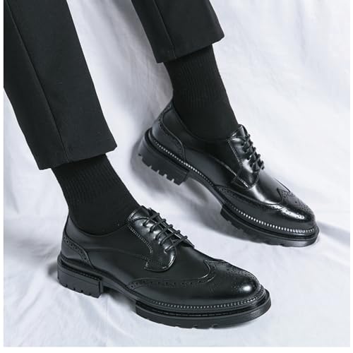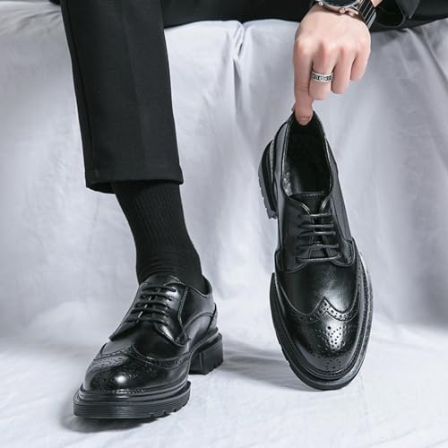 Men's Modern Wingtip Leather Carved Brogue Oxford Shoes Comfortable Round Head Platform Lace Up Height Increasing Dress Shoes for Business Casual Tuxedo Wedding Shoes Groom Shoes 6