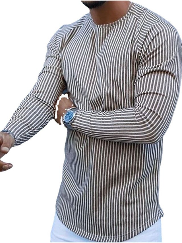 More information about Men's T Shirt Long Sleeve Shirt Long Sleeve Crew Neck Spring & Summer Striped Fashion Lightweight Muscle Vacation Casual Holiday Dark Gray Coffee Gray Top Tee for Men