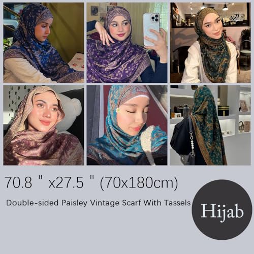Faticinfa Women's Hijab Pashmina Shawls Wraps,Double-sided Paisley Vintage Scarf With Tassels 5