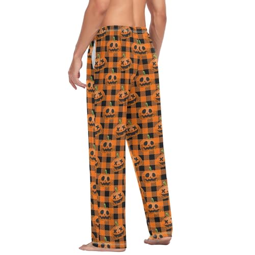 HOT ! Men's Pajama Pants,Halloween Pumpkin Buffalo Plaid Lounge Lightweight Sleep Bottoms Pants with Pockets Size S-XXL