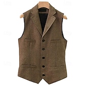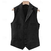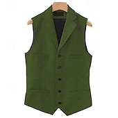 More information about Men's Vest Waistcoat Gilet Vacation Daily Wedding Party Date Fashion Casual Spring Fall Buttons Pocket Polyester Comfortable Plain Single Breasted One-button Lapel Regular Fit Black Navy Blue Dark