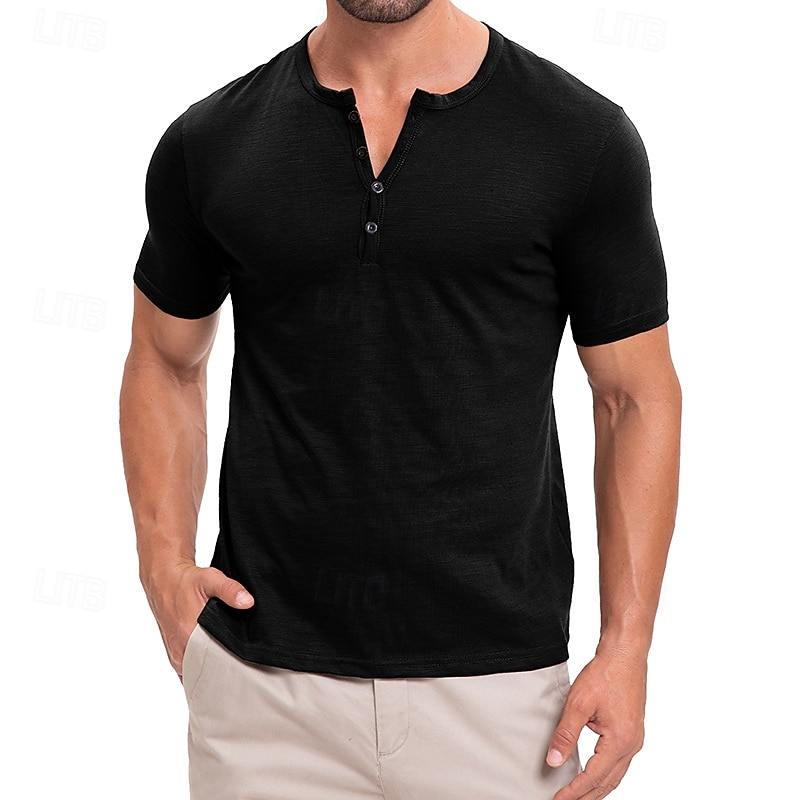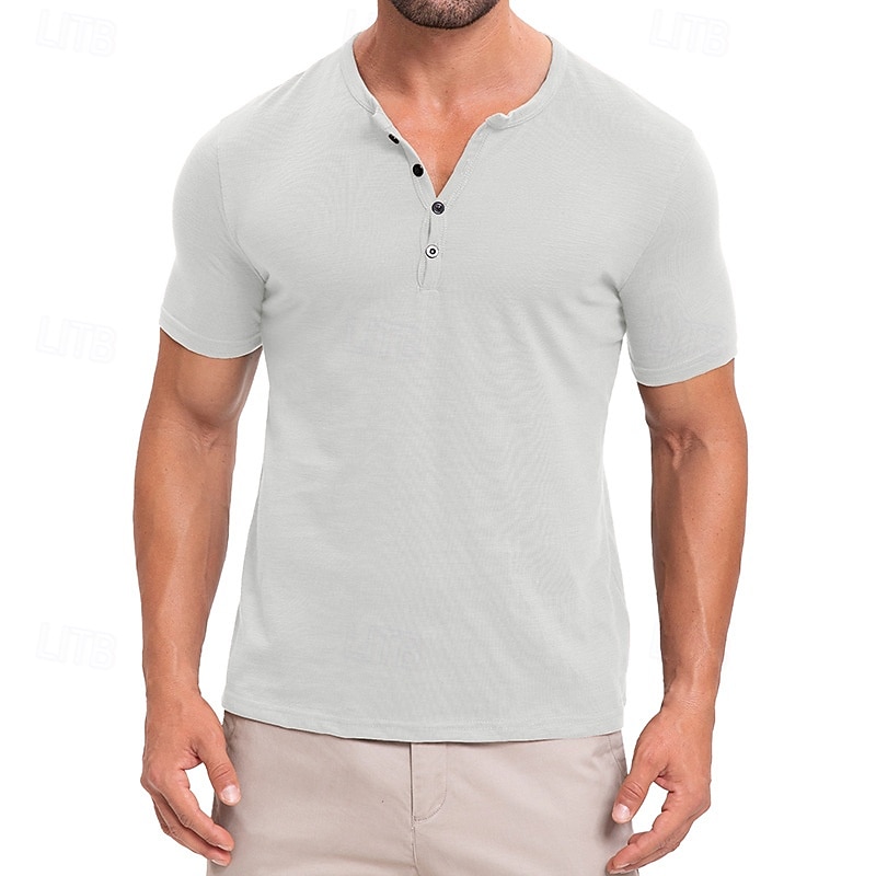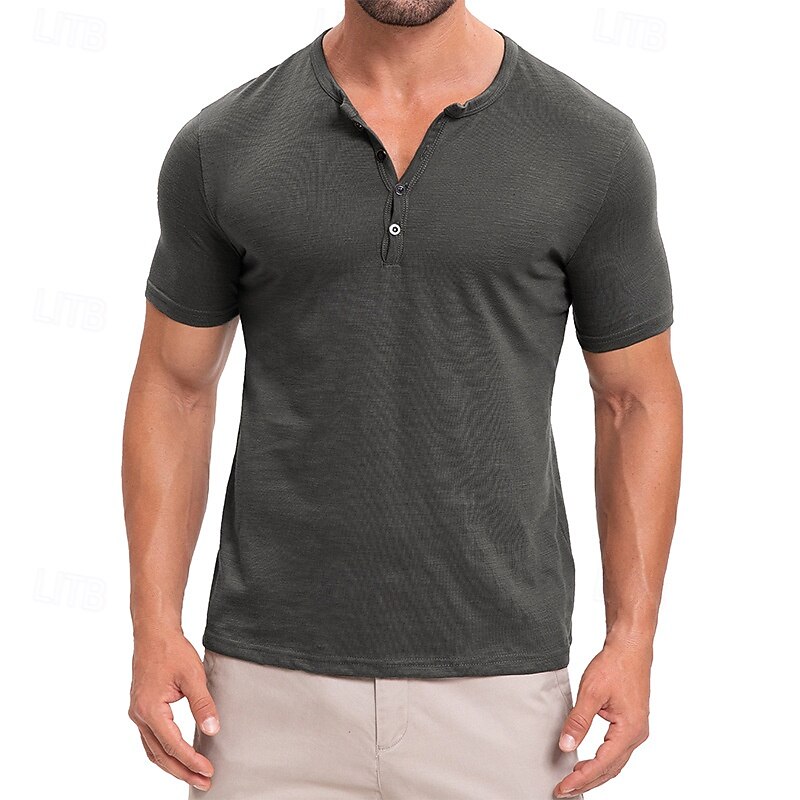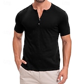 More information about Men's T Shirt Henley Shirt Tee Short Sleeve Shirt Short Sleeve Henley Summer Spring Plain Fashion Designer Basic Buttons Vacation Street Going out Black Pink Dark Gray Top Tee for Men