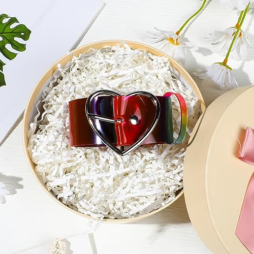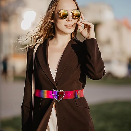 TXIN Fashion Rainbow Belt with Heart Buckle for Women Girls, Wide PVC Waist Belt Punk Waist Band Strap for Dress Jeans 5