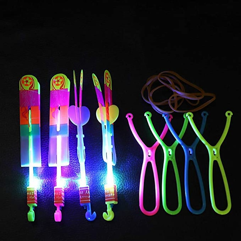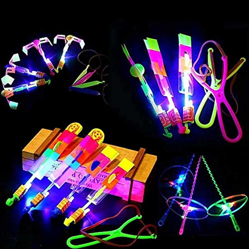 10pcs Amazing Led Light Arrow Rocket Helicopter Flying Toy Party Fun Gift Elastic Slingshot Flying Copters Birthdays Outdoor Game for Children Kidsfor Gift for Boy&Girls 1