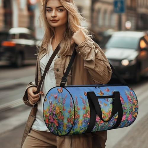 Boatee Flower Butterfly Duffle Bag for Women Travel Bag Large Duffel Bag Lightweight Weekender Handbag Foldie Travel Bag Expandable Travel Makeup Hand Bag with Zipper Holdall Purse for Gym Blue 6