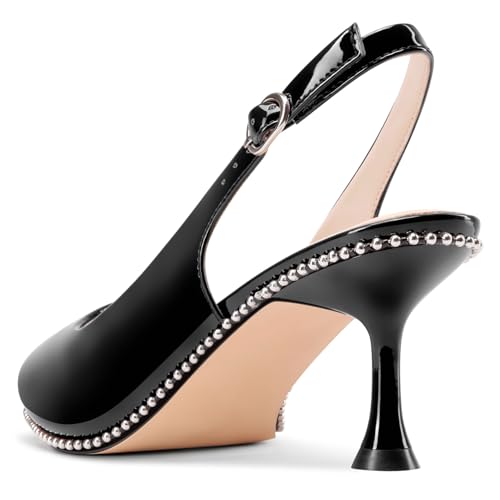 Castamere Womens Pointed Close Toe Slingback Pumps Kitten Heel Dress Casual Slip-on Patent Leather Shoes 2.6 Inches Heels 1