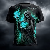 More information about Halloween Men's Pumpkin Reaper T Shirt Short Sleeve T shirt 3D Print Crew Neck Shirt Exaggerated Designer Horror Party Street Holiday Blue Orange Green Summer Spring All Seasons Clothing Apparel S M