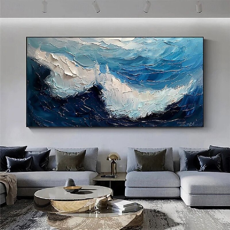 Handmade 3D Ocean oil painting handmade Wall Art Blue Huge Wave Oil Painting On Canvas Handpainted Sea Waves 3D Textured Abstract Painting Beach Landscape Sky oil painting for Living Room bedroom 11
