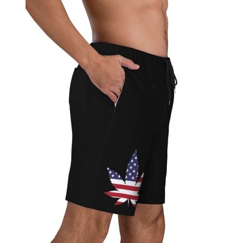 HOT ! American Weed Leaf Men's Quick-Dry Board Shorts 7" - Swim Trunks Summer Hawaii Beach