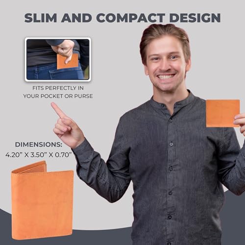 HOT ! AG Wallets RFID Blocking Wallet for Men - Bifold Slim Wallet - Travel Wallet with 8 Card Holders, Full Size Bill Slot & 4 ID Windows - Cowhide Leather Wallet with Dual Flip Out ID Flaps - Tan
