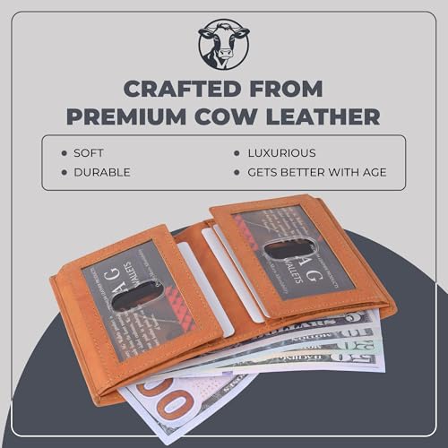 More information about AG Wallets RFID Blocking Wallet for Men - Bifold Slim Wallet - Travel Wallet with 8 Card Holders, Full Size Bill Slot & 4 ID Windows - Cowhide Leather Wallet with Dual Flip Out ID Flaps - Tan