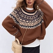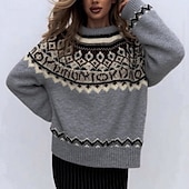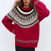 More information about Women's Sweater Fair Isle Sweater Pullover Fashion Casual Geometric Ribbed Crew Neck Knitted Print Long Sleeve Regular Tops Knit Christmas Outdoor Daily Red Fall Winter