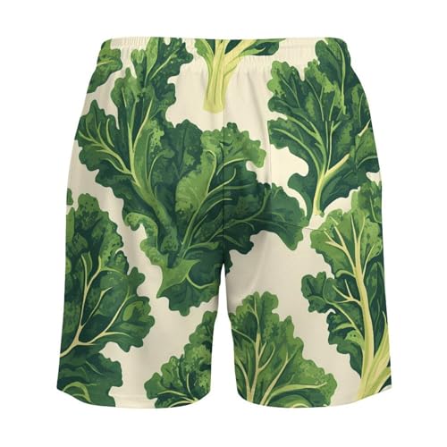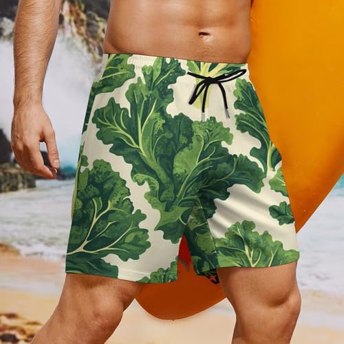 Fresh Kale Leaves Men's Swim Trunks with Compression Liner Beach Shorts with Pockets Quick Dry 7