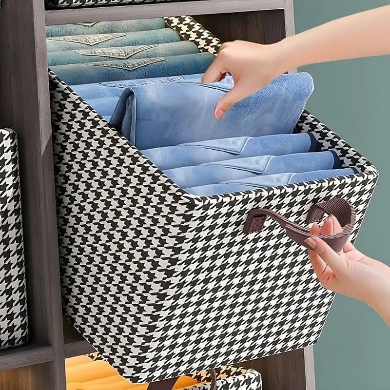 HOT ! 2Pcs Foldable Jeans Organizer for Closet, Large Capacity Houndstooth Storage Box, Dustproof Foldable Clothes Storage Bin for Home Organization