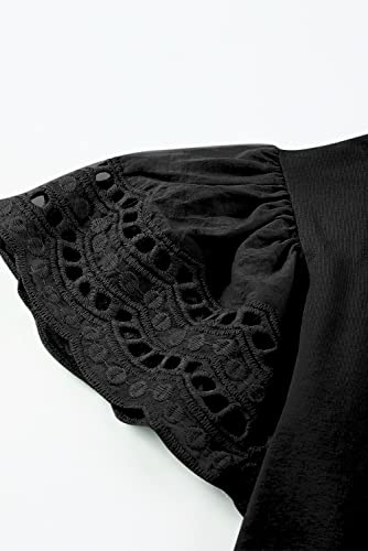 • FEATURE:This shirt has openwork ruffled sleeves and a loose fit with a comfortable round neck.