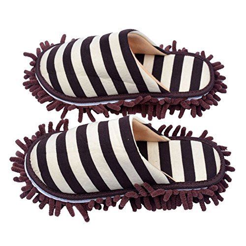 HOT ! Selric Cozy Washable Dust Mop Slippers Stripe Closed Toe, Multi-sizes Multi-Colors Available, Chenille Fibre Detachable Mop Soles, Indoor House Slippers