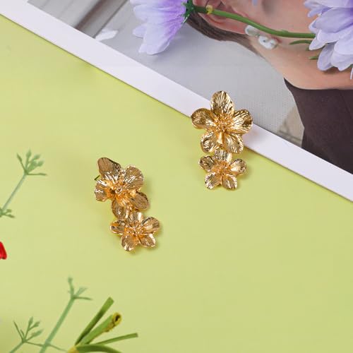 Large Gold Flower Earrings For Women Gold Double Flower Statement Earrings Elegant Boho Floral Earring For Women Trendy Boho Jewelry For Mother'S Day Wedding Birthday Christmas 7
