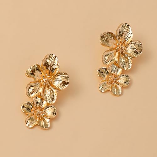 • 【Reliable Materials】Large gold flower earrings has been finely polished, with a smooth and shiny surface and is not easy to fade.The women's flower statement earrings are comfortable and safe to wear