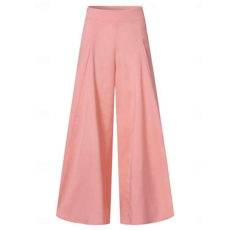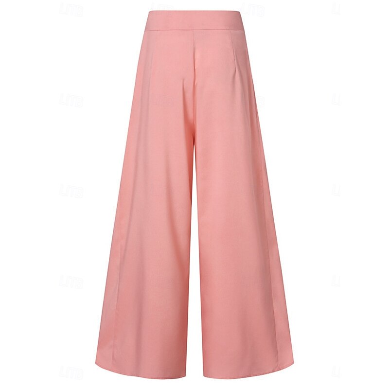 More information about Women's Wide Leg Chinos Vintage Fashion Basic Full Length High Waist Plain Elastic Waistband Comfy Soft Comfortable Micro-elastic Outdoor Vacation Office Black Pink Khaki Gray Summer Spring Loose Fit