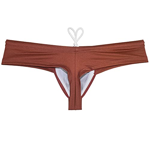 HOT ! Men's Brazilian Bikini Swimsuit Thong Drawstring Swimwear Solid Shiny Ultra Cheeky Swim Boxer Briefs