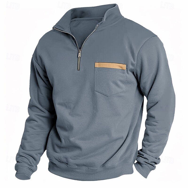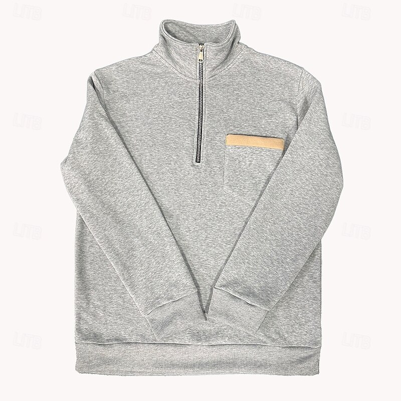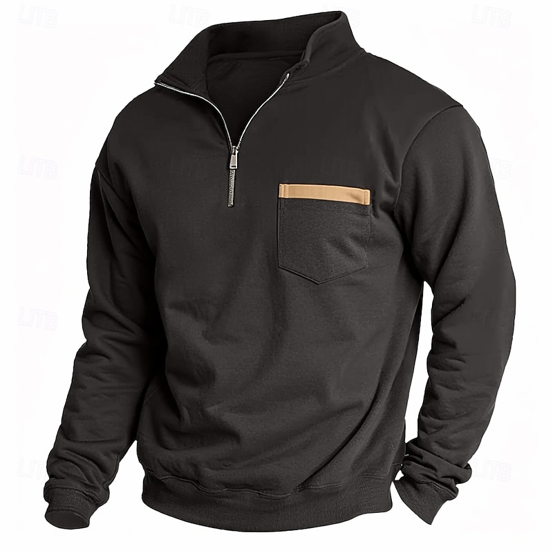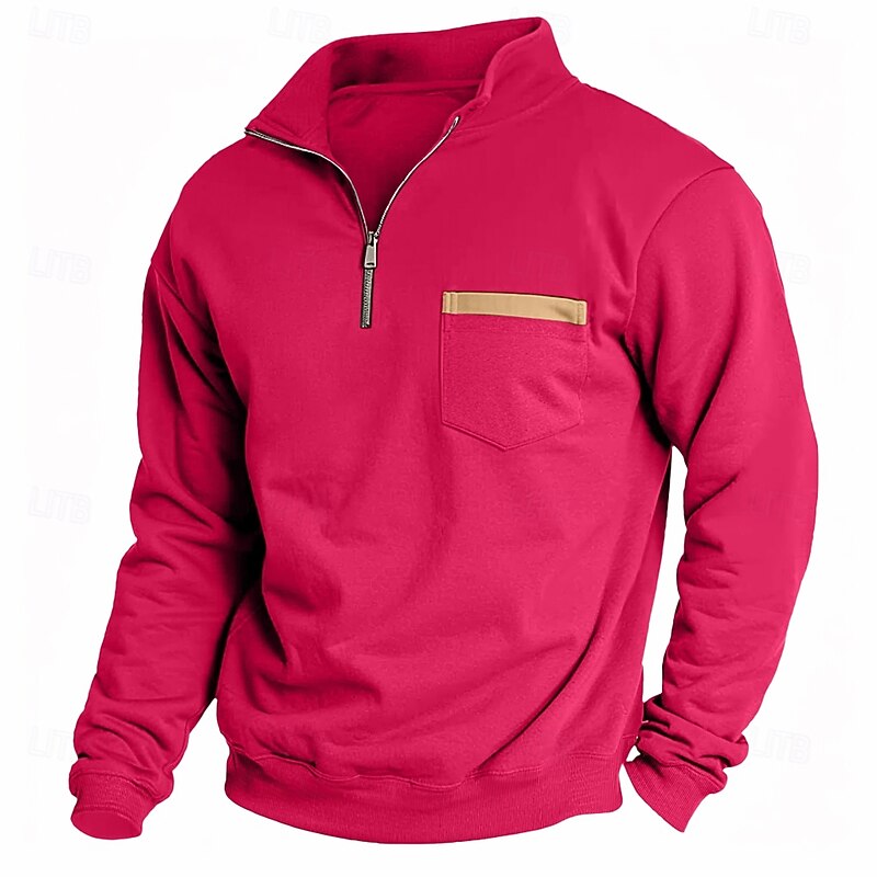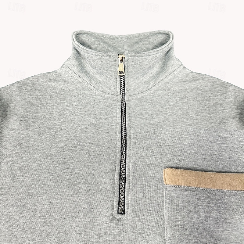 More information about Men's Sweatshirt Quarter Zip Sweatshirt Black Army Green Red Navy Blue Light Grey Half Zip Plain Pocket Sports & Outdoor Daily Holiday Casual Tactical Spring & Fall Clothing Apparel Hoodies